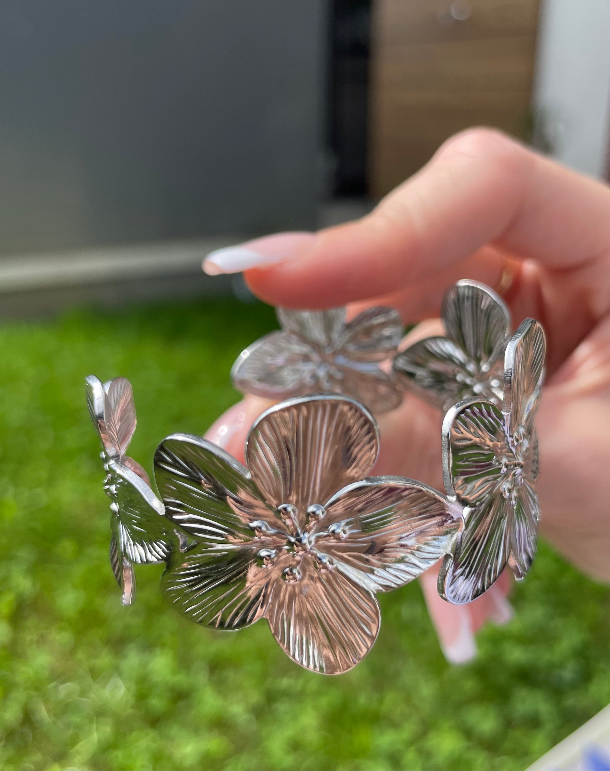 Le bracelet réglable Azel, disponible en argenté ou en doré, présente un délicat design floral pour une touche d’élégance au poignet tout cela en acier inoxydable