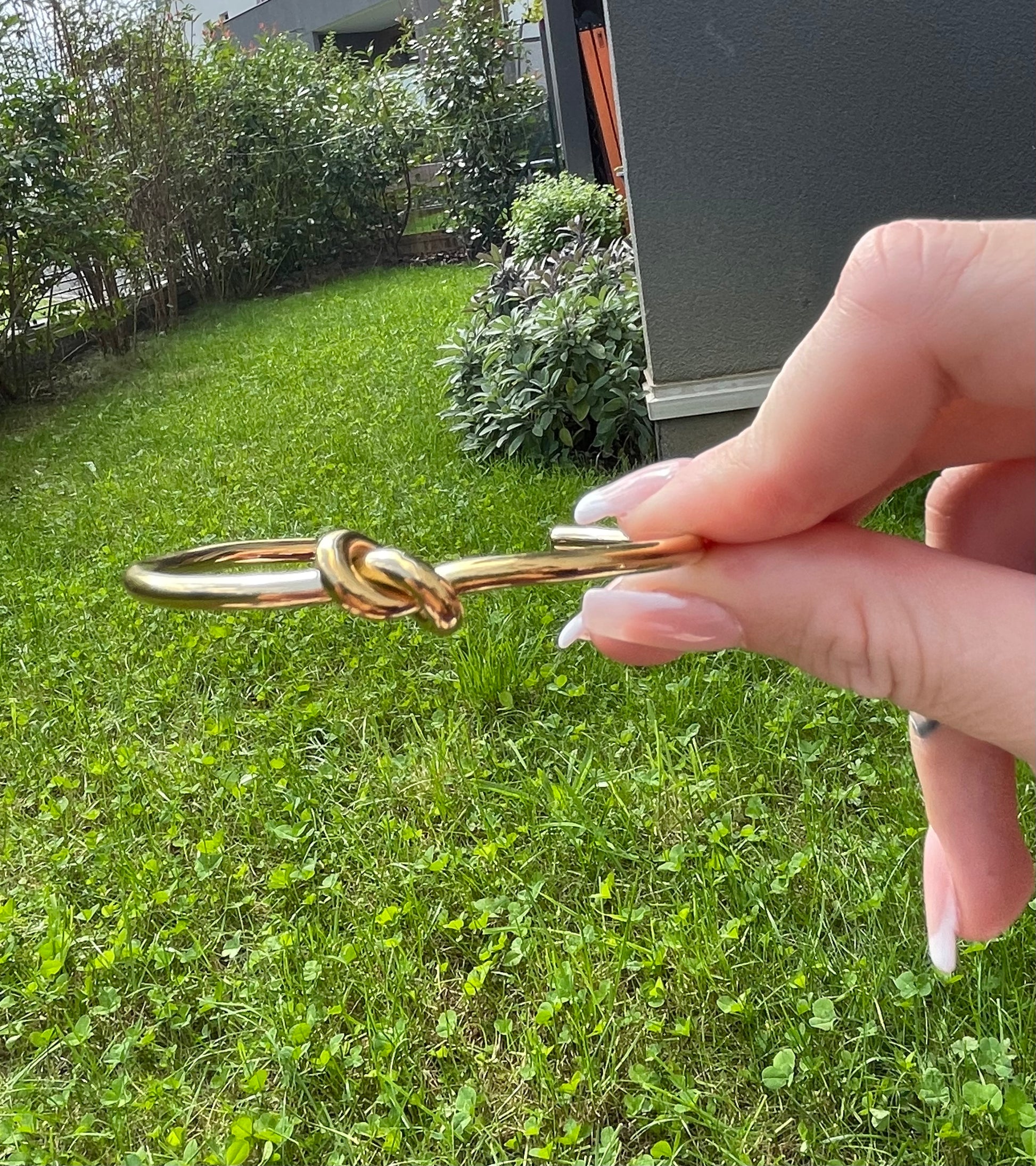 Apportez une touche de délicatesse à vos mains avec le jonc Éternité ✨ Doré et ponctué d’un subtil nœud, il incarne l’élégance simple et raffinée à porter au quotidien.